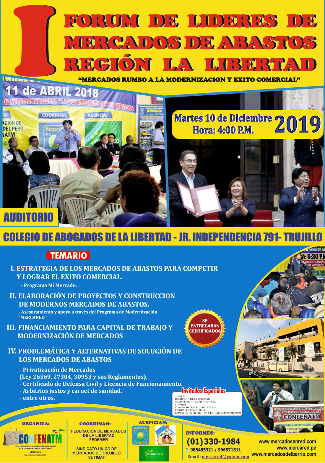 CON GRAN ÉXITO SE REALIZO EL "I FORUM DE LIDERES DE MERCADOS DE LA REGIÓN LA LIBERTAD" TRUJILLO