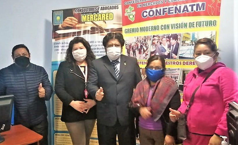 EL EQUIPO DE PROFESIONALES de la "CONFENATM" y "MERCARED", asumiendo la ASESORIA LEGAL para la titulación del Mercado "Eduardo Dibós" del Rímac